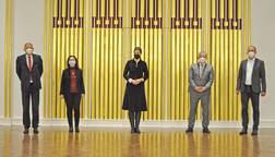 v.l.n.r.: Prof. Dr. Hans Schulte-Nölke (Projektleitung Universität Osnabrück), Prof. Dr. Siegrid Westphal (Projektleitung Universität Osnabrück), Prof. Dr. Susanne Menzel-Riedl (Präsidentin der Universität Osnabrück), Dr. Thomas Veen (Sprecher der Monitoring-Gruppe im diözesanen Schutzprozess) und Generalvikar Ulrich Beckwermert (Bistum Osnabrück)